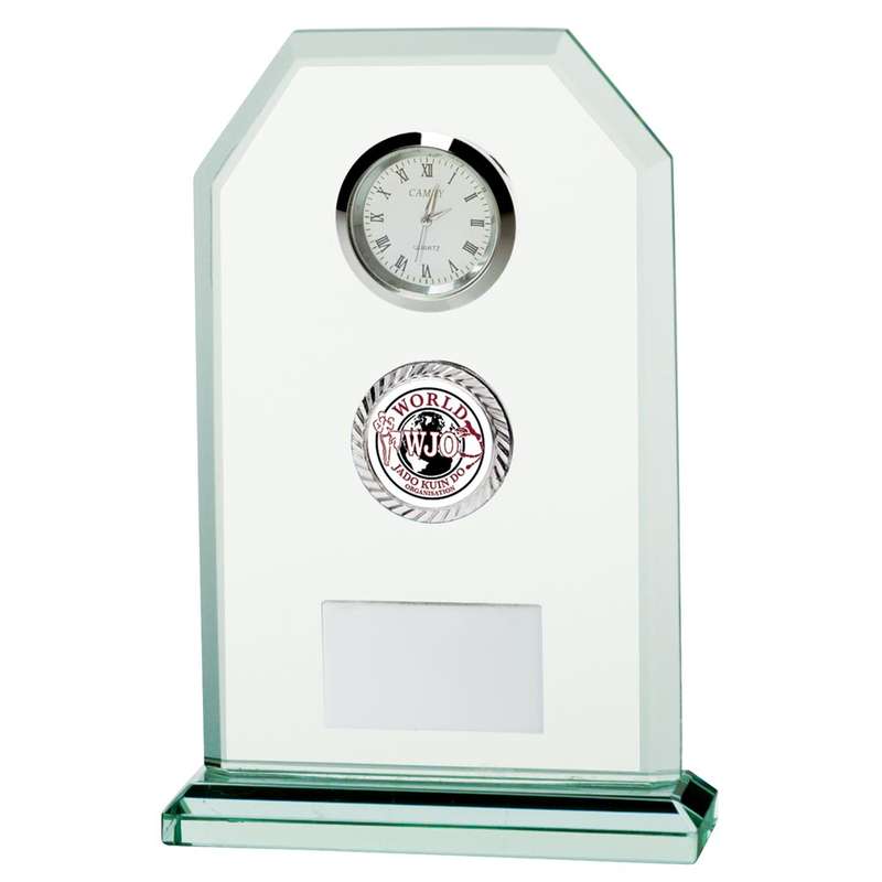 Looking for a corporate glass clock? The Jade Vitoria Multisport Glass Clock is the perfect choice. Visit Spa Trophies Ltd now!